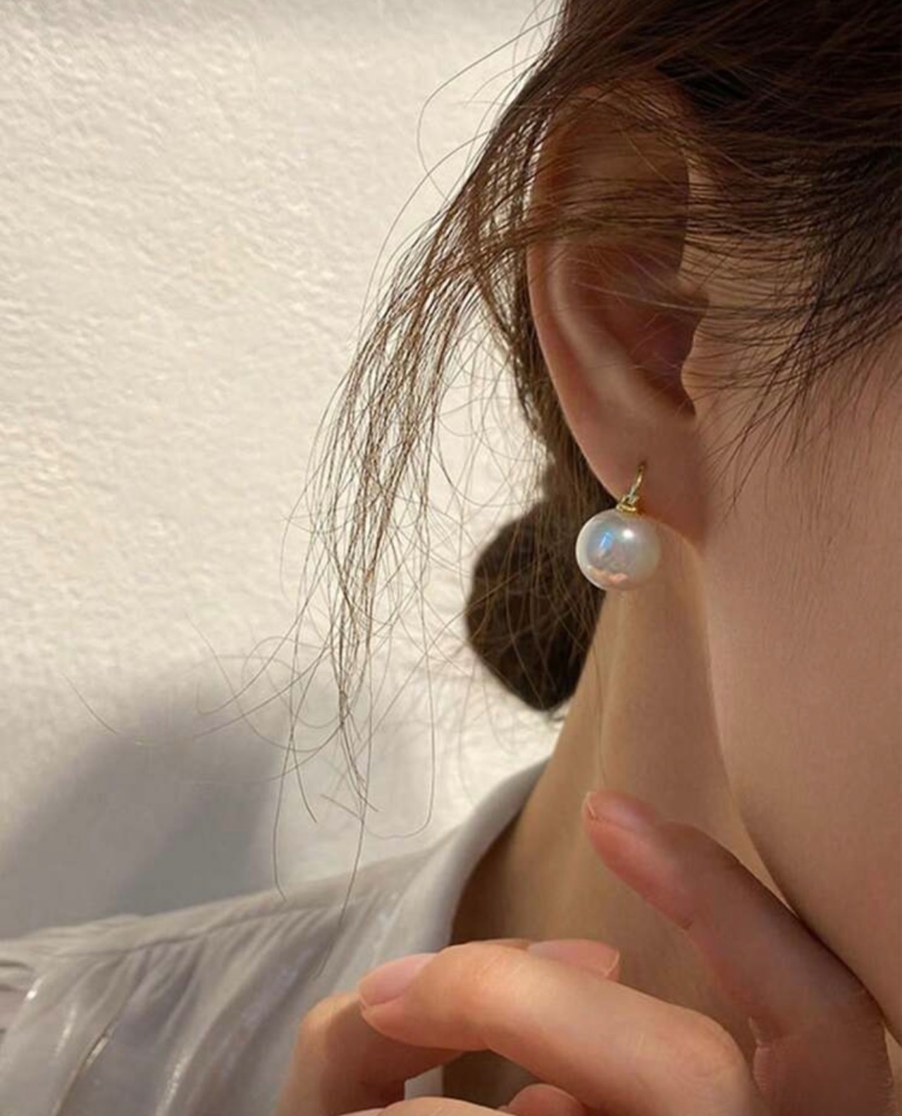 ほどよいサイズ感のパールが顔まわりを明るく見せ、カジュアルにもフォーマルにもマッチします。